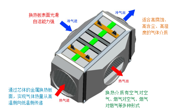 l 定制的传热板片,使小流速气体产生絮流,代替传统列管型;—传热系数高